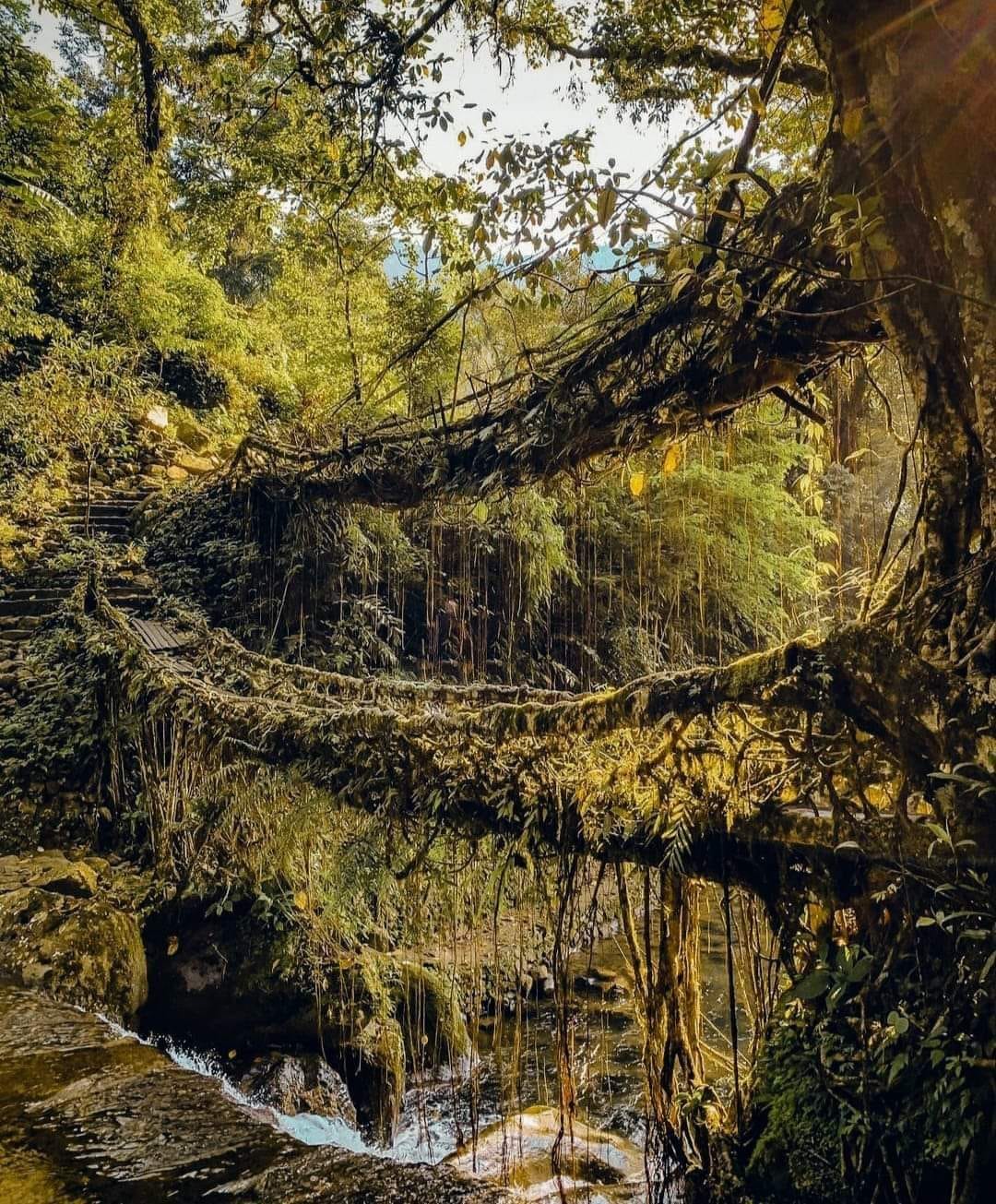 Double Decker Living Root Bridges, Blue Logone Water and Rainbow Fall